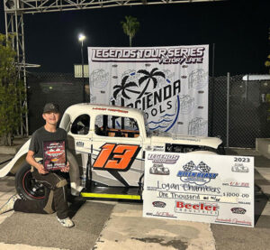 Read MoreIRWINDALE, Calif. (April 9, 2023) – Bakersfield’s Logan Chambers put himself into the history books by winning the inaugural roval race for the INEX Legends Tour Series on Saturday night, scoring the 20-lap win on the high-speed course around the Irwindale Speedway in Irwindale, Calif. Chambers led only the final lap of the race over…