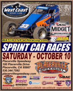 Read More(October 6, 2020 from Gary Thomas) – The FloRacing cameras will be rolling as wingless mania invades Placerville Speedway for the “Prospector Pandemonium” this Saturday! Throwing it down on the famed red clay will be the USAC West Coast Wingless 360 Sprint Cars, the USAC Western States/ BCRA Midgets and the Wingless BCRA Midget Lites!…