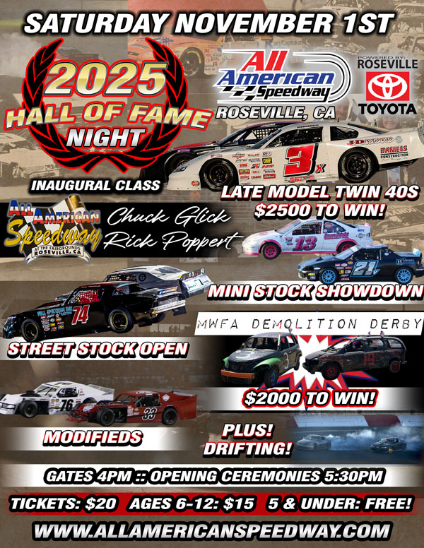 ALL AMERICAN SPEEDWAY CLOSES 2025 SEASON NOV 1 WITH HALL OF FAME NIGHT