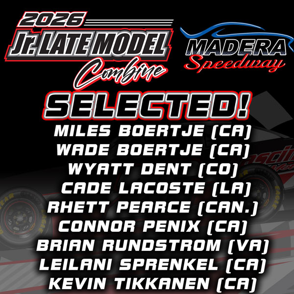 FULL SIXTEEN DRIVER ROSTER UNVEILED FOR THE MADERA JR. LATE MODEL COMBINE