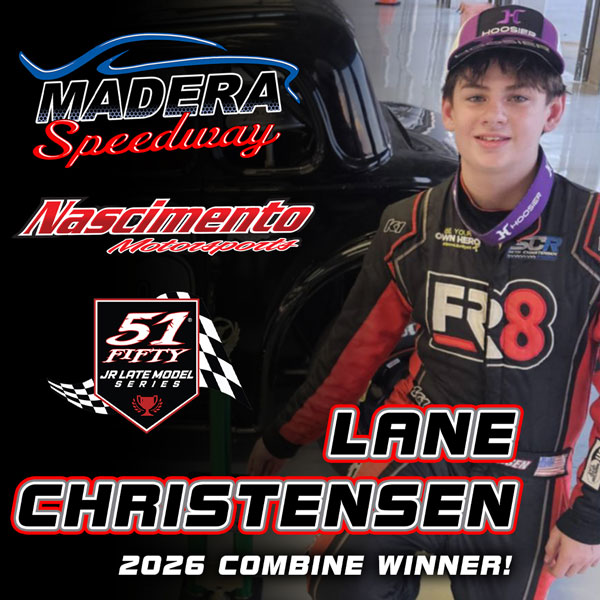 MADERA, CALIFORNIA (January 30, 2026) – 14-year-old Lane Christensen of Pendergrass, Georgia has been named the winner of the 2026 Jr. Late Model Combine, topping 15 invited participants from across North America who tested INEX Legends and 51FIFTY Jr. Late Models at Madera Speedway on January 23-24. Organized by championship-winning Nascimento Motorsports, Christensen earned one fully funded race in the 2026 series which begins March 14 in Madera, Calif. Courtesy Photo