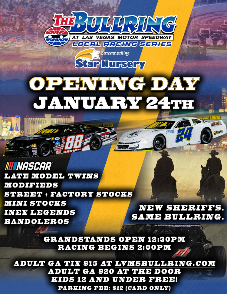 LAS VEGAS, NEVADA (January 20, 2026) – The Bullring at Las Vegas Motor Speedway opens its Local Racing Series presented by Star Nursery this Saturday January 24 with a complete slate of NASCAR and INEX sanctioned racing action on the .375-mile oval. The Limited Late Models highlight the action with twin 30-lap features plus the new Terrible’s INEX Legends, NASCAR Modifieds, and much more. Photo by Christopher Vargas