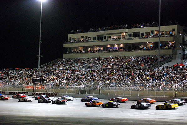 JG: Oh man, I couldn’t believe how big the place was. I mean, it felt like if we built grandstands taller and all around, like we’d be at a Cup series track. You think “half-mile”…well, ok, Irwindale is supposed to be a half-mile. Vegas is 3/8ths. This place felt like Daytona compared to those tracks. And the tower and suites were as nice as something you’d find at a Cup caliber track.